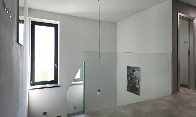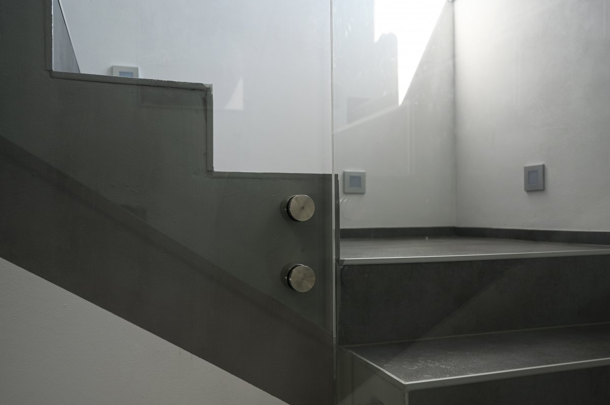 Celoskleněné zábradlí - v čirém provedení dodává více světla v každém rohu schodiště.