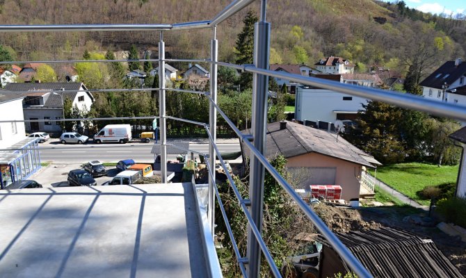 Nerezové zábradlí s prutovou výplní - vhodné jak pro interiér, tak i pro exteriér. Obvyklý počet výplní: 4 - 5 prutů, profil: kulatý x hranatý, kotvení: vrchní x boční. Tentokrát varianta kulaté sloupky s bočním kotvením a kulaté madlo. Vyrábíme a montujeme po celé České republice, občas i v zahraničí.