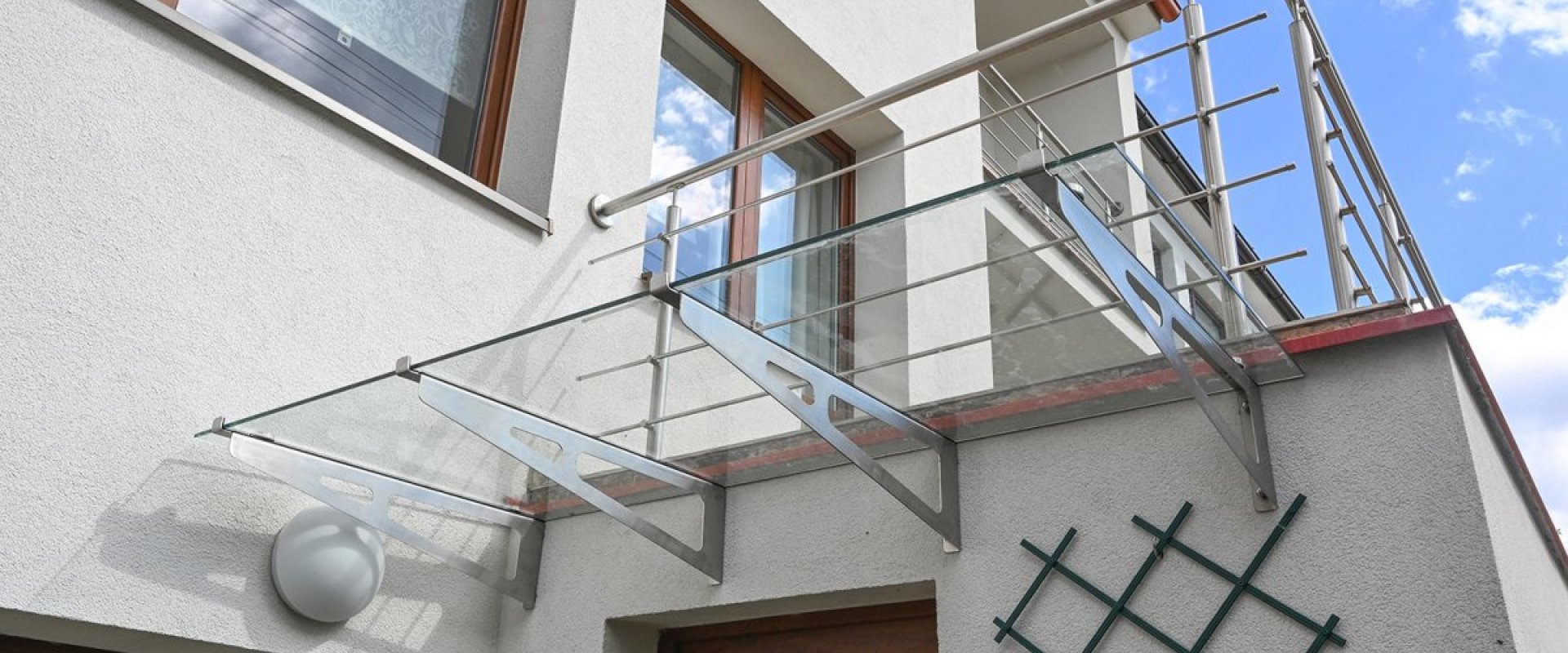 Skleněnou stříšku lze umístit bez zateplení nebo se stavební přípravou, stříška s čtvercovým profilem.